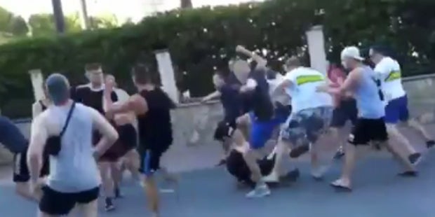 Holligans zweier verfeindeter Fußballklubs aus Deutschland lieferten sich eine brutale Straßenschlacht.