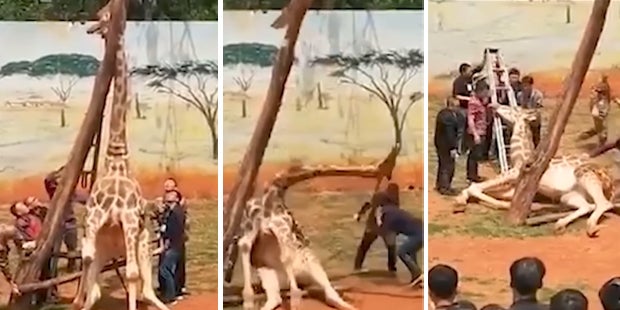 Ein Zuseher filmte die verzweifelte Rettungsaktion - und den Tod des großen Tiers. In dem Moment, in dem die Giraffe wieder frei ist, fällt sie zu Boden. Dabei trifft das Männchen einen Zoo-Mitarbeiter am Kopf. Die Angestellten versuchen sofort, das Tier mittels Herzdruckmassage wiederzubeleben, doch ohne Erfolg: Laut Tierärzten starb Hairong an schweren Halsverletzungen. Die Behörden haben die Ermittlungen eingeleitet.