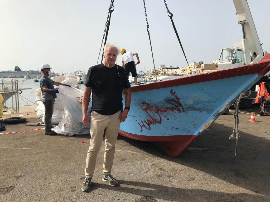 Lampedusa. Dutzende kleine Boote liegen im Hafen von Lampedusa. Seelenverkäufer. Ein Kran hievt sie aus dem Wasser. Es sind billig zusammengeschweißte Stahlkähne mit meist nur einem Außenbordmotor. Kaum mehr als 20 PS. So fahren sie über das offene Meer. Von Sfax in Tunesien bis nach Lampedusa.