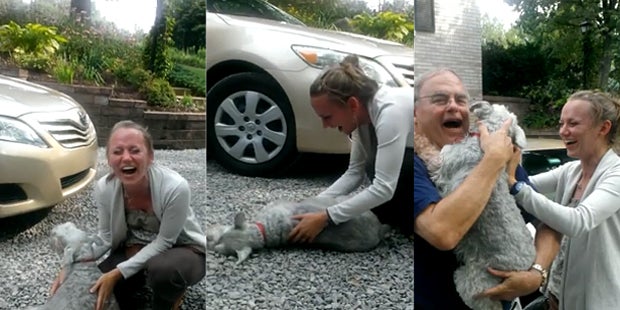 Hundebesitzerin Rebecca Ehalt war zwei Jahre zuvor von den USA nach Slowenien gezogen und hatte Hund "Casey" zurückgelassen. Als Ehalt wieder in ihre alte Heimat zurückkehrte, war die Freude bei der Hundedame grenzenlos. Seit das Video vom emotionalen Wiedersehen am vergangenen Donnerstag auf Youtube hochgeladen wurde, hat der Clip bereits über 17 Millionen Klicks erzielt.