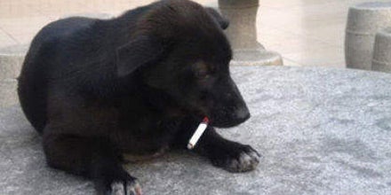 Brutales Experiment in China: Zeng Ziguang hat laut Medienberichten seinem Hund das Rauchen beigebracht. Das Training für "Blackie" begann vor sechs Monaten, nun ist er süchtig.