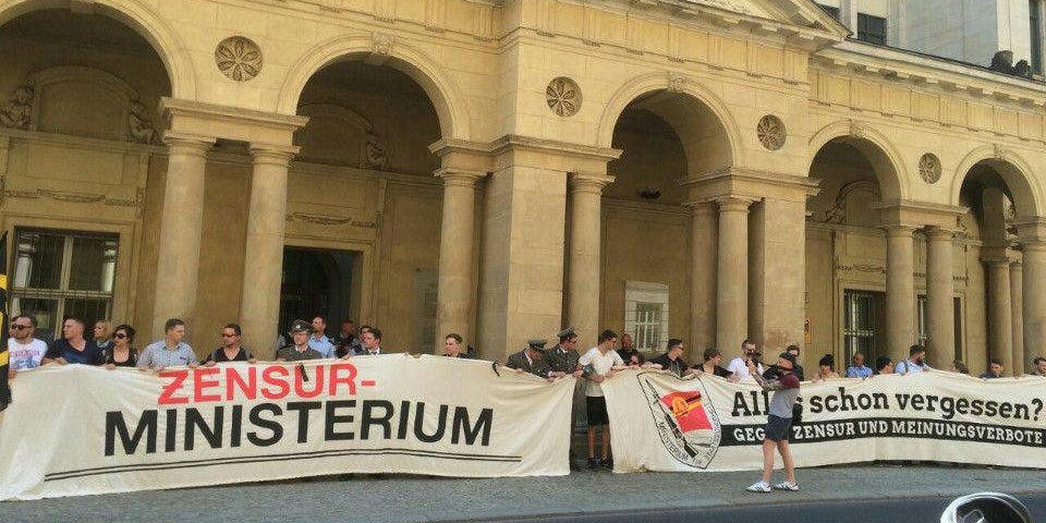 Von der Identitären Bewegung im Internet verbreitete Bilder zeigten Transparente mit den Aufschriften "Zensurministerium" und "Gegen Zensur und Meinungsverbote". Einige Teilnehmer trugen Uniformen im Stil der DDR-Volkspolizei. Die "Passauer Neue Presse" berichtete unter Berufung auf Ministeriumskreise, die Demonstranten hätten mit Blick auf Justizminister Heiko Maas "Maas muss weg, Festung Europa, macht die Grenzen dicht" skandiert.