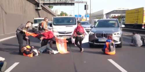 "Ihr Vollidioten", schreit ein Mann immer wieder, wie in einem Twitter-Video der Gruppe "Letzte Generation" zu hören ist. "Geht arbeiten, ihr Schweine!", ruft jemand.