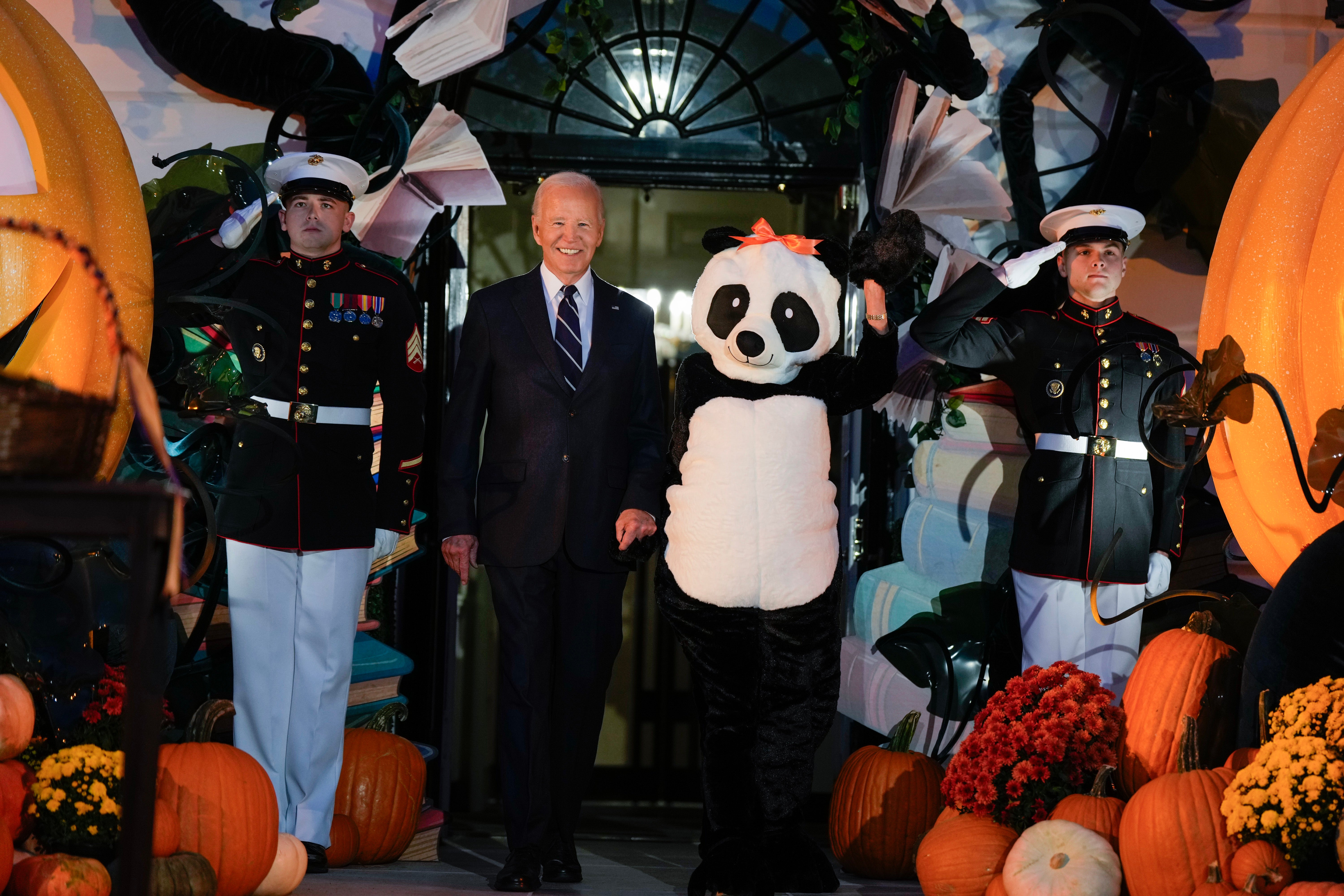 Präsidentengattin Jill Biden verkleidete sich als Panda. Es war ein zeitgemäßes Kostüm: Der Zoo von Washington hat seit Kurzem nach rund einem Jahr Pause wieder zwei Pandas aus China.