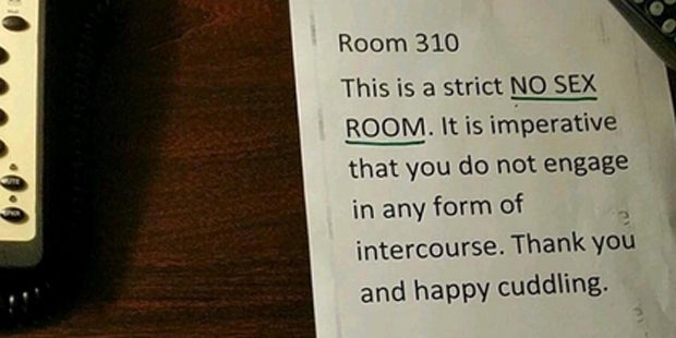 Auf den ersten Blick wirkt diese Maßnahme radikal, doch hinter der Nachricht steckt eine süße Geschichte: Ein Gast verlangte bei der Buchung des Zimmers eben diese Notiz: "Das Mädchen, mit dem ich komme, hat klar gemacht, dass wir keinen Sex haben. Könnten Sie deshalb irgendwo ein Schild aufstellen, das besagt, dass es sich bei dem Zimmer um einen "Kein-Sex-Raum" handelt, so wie es Nichtraucher-Zimmer gibt, sodass sie sich besser fühlt?", lautete die ungewöhnliche Anfrage des Mannes.