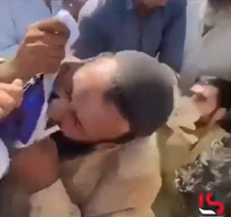 In einem Social-Media-Video äußert ein Mann seinen Hass gegen den angegriffenen Staat Israel indem er eine Fahne des Landes zerbeißt, an den Stücken kaut.