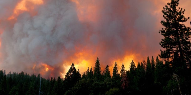 Mit gigantischen Rauchsäulen über den Bergkämmen flohen Touristen aus dem meistbesuchten Areal des Naturwunders. 8000 Feuerwehrleute konnten bisher den Brand nur zu sieben Prozent unter Kontrolle bringen. Das Feuer schafft in dem zerklüfteten Terrain ein eigenes Mikroklima mit tückischen Winden mit Böen von 70 km/h. Die Feuerwehr-Teams, die Gräben für Feuerbarrieren ausheben, müssen aufpassen, dass sie von dem Inferno nicht eingeschlossen wurden (im Juni starben 19 Feuerwehrleute bei einem Waldbrand in Arizona, als sie die Flammen umzingelten).