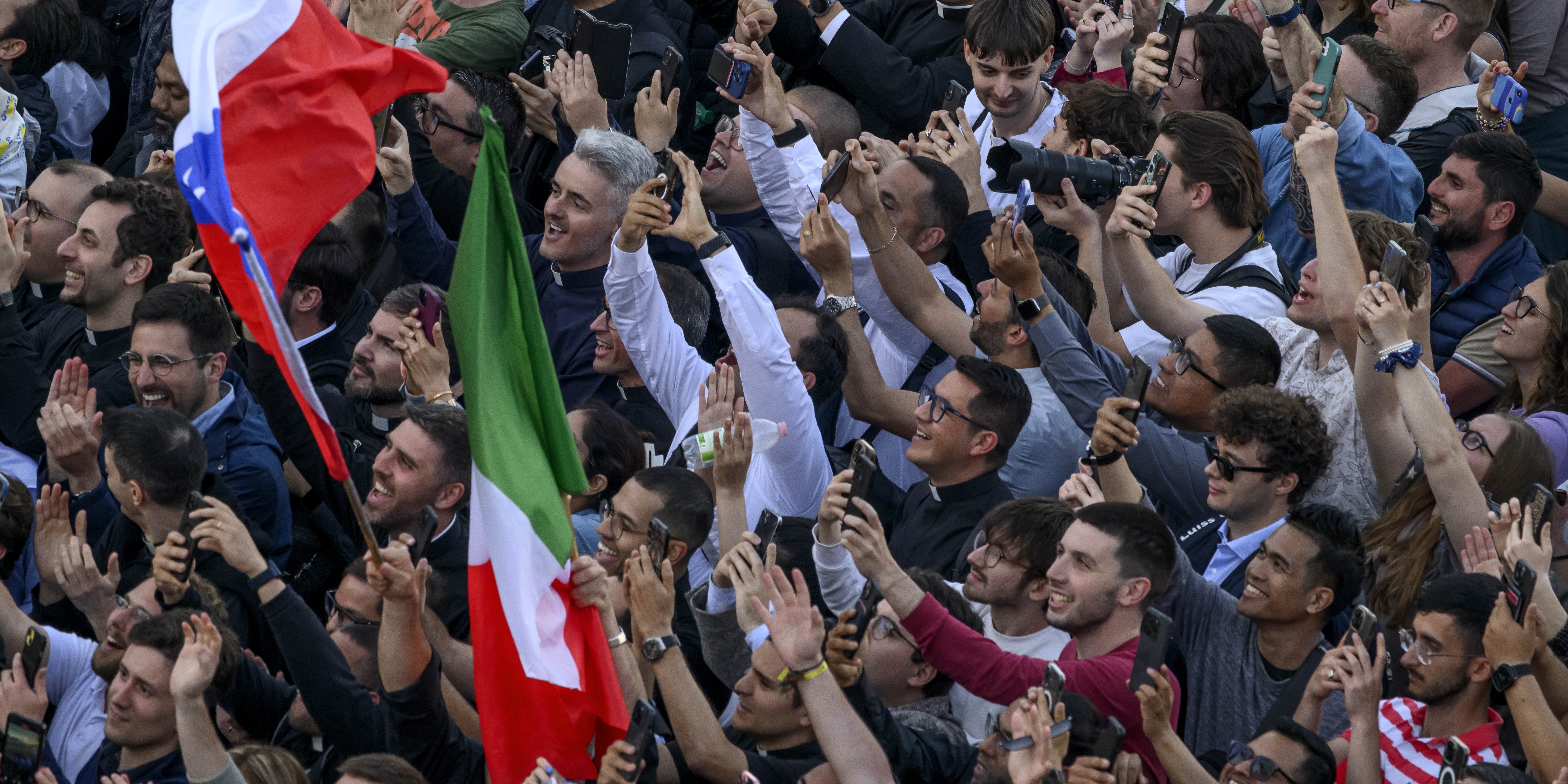 Die Menge jubelt, Menschen umarmen sich und können sich vor Freude kaum halten. Diejenigen, die den Platz noch nicht erreicht haben, strömen begleitet vom Glockengeläut des Petersdoms im Laufschritt auf den Vorplatz der Basilika, um den neuen Papst zu begrüßen.