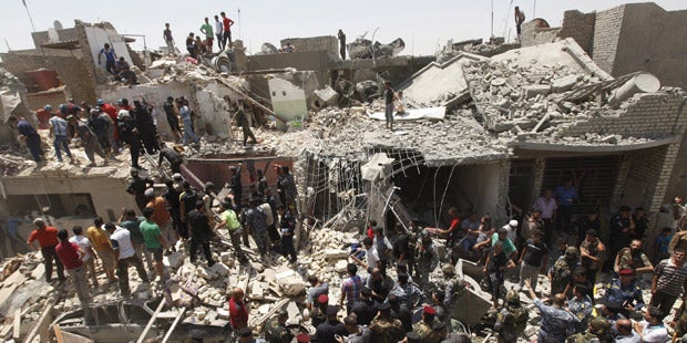 Eine der Bomben blieb wegen eines technischen Problems stecken und stürzte bei der Rückkehr des Flugzeugs zum Stützpunkt auf drei Häuser in Bagdad Dschadida."