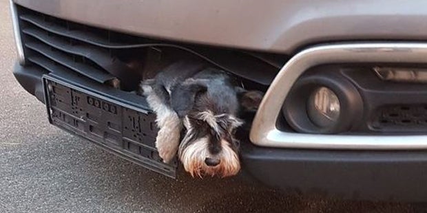 Ein kleiner Hund ist nach einem Zusammenprall mit einem Auto in Niedersachsen einen ganzen Tag im Kühlergrill festgesteckt. Der 13 Jahre alte Zwergschnauzer wurde erst am Abend von der Besitzerin des Fahrzeugs entdeckt, als ihr ein leises Winseln auffiel, wie die Polizei in Buchholz in der Nordheide am Mittwoch mitteilte. Feuerwehrleute befreiten das Tier nahezu unverletzt.