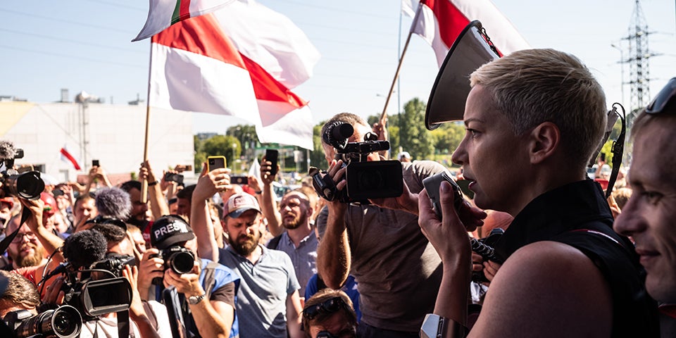 Kolesnikowa hat eine Schlüsselrolle bei den jüngsten Protesten gegen den Ausgang der Wahl vom 9. August. Ihre beiden Mitstreiterinnen haben das Land inzwischen verlassen: Mitte August reiste die ehemalige Präsidentschaftskandidatin Tichanowskaja nach Litauen, ihre Vertraute Olga Kowalkowa Anfang September nach Polen.