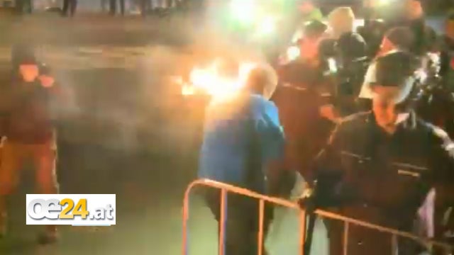 Krawallmacher bewerfen Polizisten mit Molotow-Cocktails
