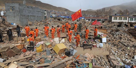 Katastrophengebiet im tibetischen Hochland eingetroffen, wo die Überlebenden