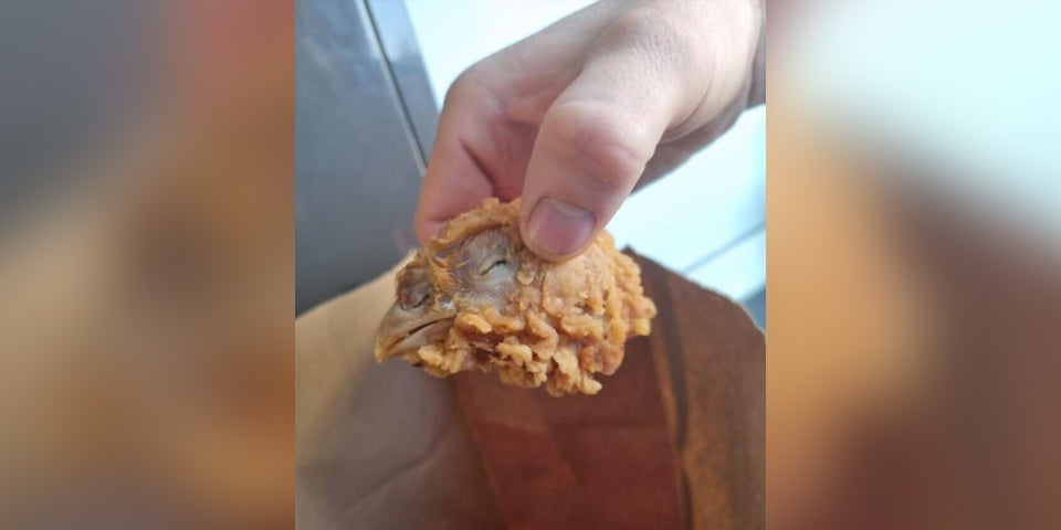 Die Kundin fischte einen frittierten Hühnerkopf mit Schnabel aus ihrer Fast-Food-Box.