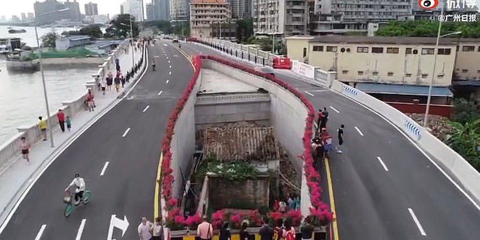 Guangzhou. Bilder eines kleinen Haus in der Metropole Guangzhou im Süden Chinas sorgen derzeit für Aufsehen - weil eine Autobahnbrücke um das Haus herum gebaut werden musste. Die Besitzerin des 40 Meter breiten Häuschens hatte sich geweigert, für das Projekt Haizhuyong-Brücke Platz zu machen, wie sie einem Fernsehsender der Provinz Guangdong erzählte.