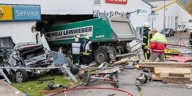 Die Ursache des Unfalls war zunächst unklar. Der Polizei zufolge betrug der Sachschaden am Werkstattgebäude um die 100.000 Euro, am Lkw rund 95.000 Euro. Erst kurz nach Mitternacht war die Bergung des Lastwagens beendet. Nach ersten Erkenntnissen bestehe bei dem Autohaus keine Einsturzgefahr, sagte eine Polizeisprecherin.