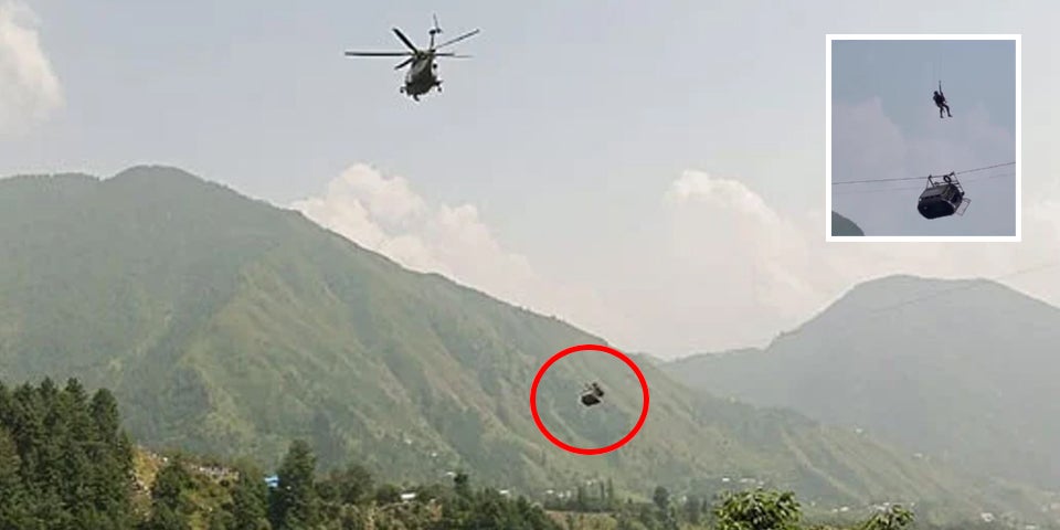 Am Nachmittag (Ortszeit) kreisten noch mehrere Helikopter über der Schlucht in der Provinz Khyber Pakhtunkhwa. Fernsehaufnahmen am Dienstag zeigten, wie sich ein Kommandosoldat aus einem Militärhubschrauber zu der Gondel abseilte. Dabei hing die Seilbahn nur noch an einem Stahlseil, nachdem zwei Drähte am Morgen gerissen waren. Einige Kinder waren auf dem Weg zur Schule.
