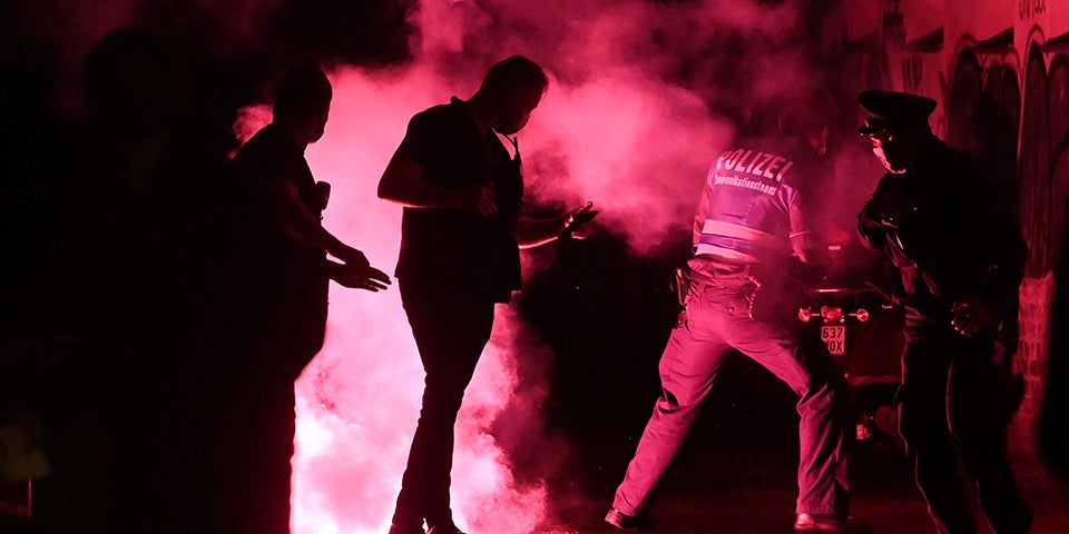Mit Flaschen, Pyrotechnik und Steinen beworfen