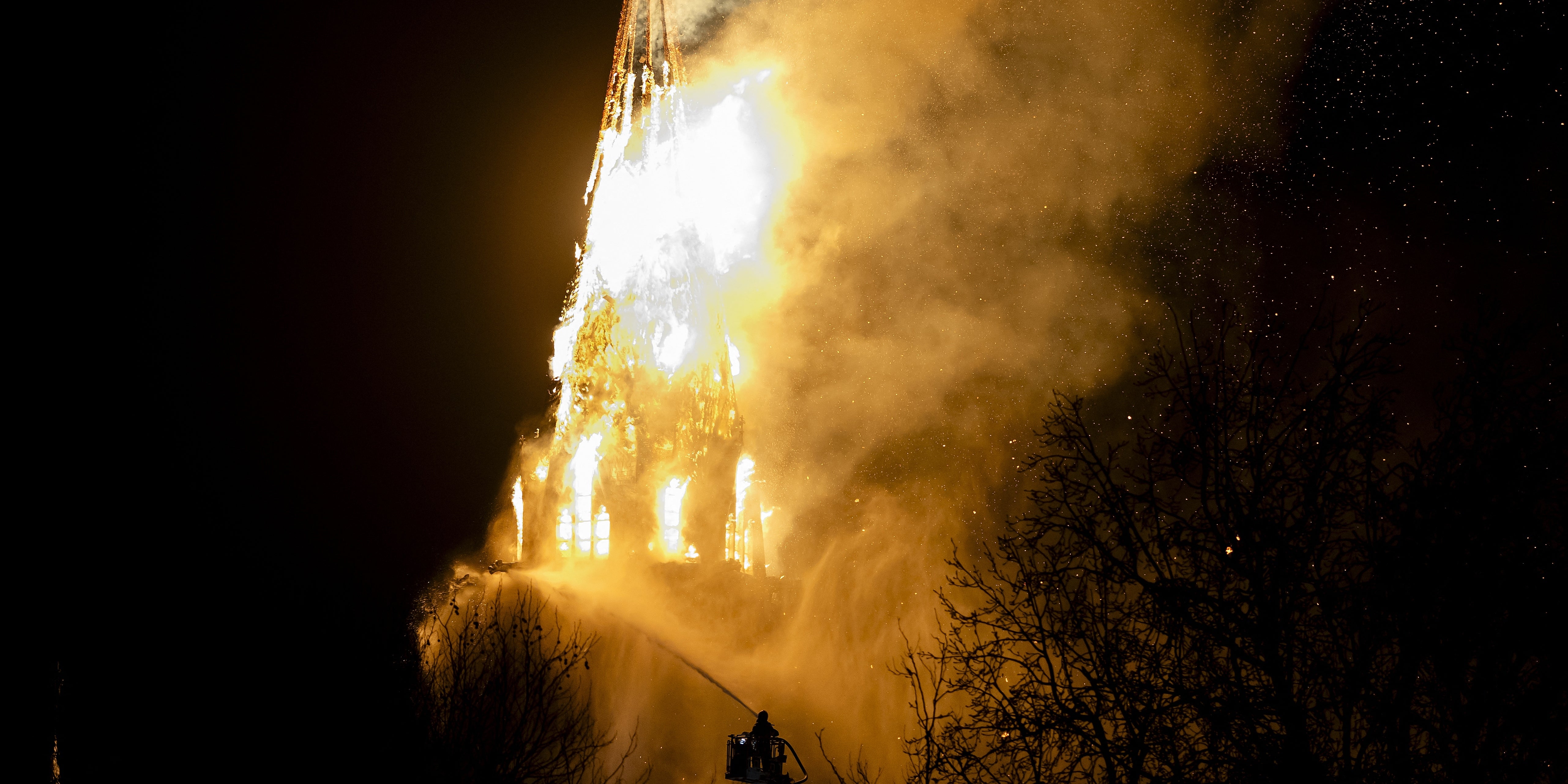 In Amsterdam geriet der Turm der Vondelkirche im Zentrum der Hauptstadt in Brand, wie die Nachrichtenagentur ANP meldete. Die Spitze des Turms stürzte ein, ein Großaufgebot von Einsatzkräften rückte an.