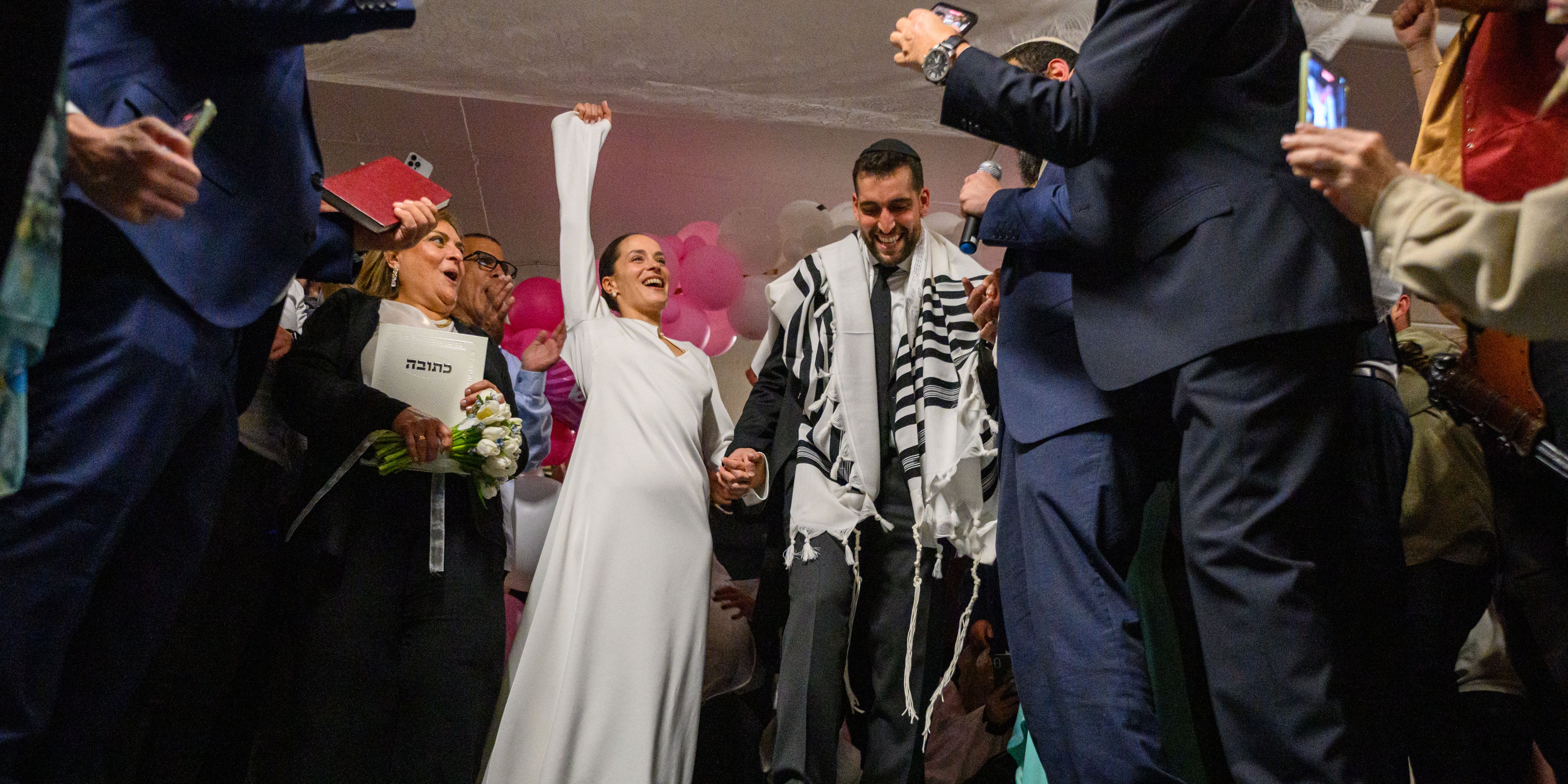 Der Krieg überschattet derzeit den Alltag vieler Menschen in Israel. Dennoch entschieden sich Braut Lior und Bräutigam Misha für ihren großen Moment und gaben sich das Jawort. Zwischen Betonwänden in einer Tiefgarage versammelten sich Familienmitglieder und Freunde, um das Paar zu feiern.