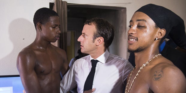 Einer der beiden jungen Männer auf dem Foto sei erst kürzlich aus dem Gefängnis entlassen worden, nachdem er eine Haftstrafe wegen eines Überfalls abgesessen hatte. Mit Blick auf Le Pens Äußerungen warnte Macron vor einem "Diskurs des Hasses".
