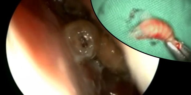 Ein Video, das Dr. Meenesh Juvekar vom Bombay-Spital in Mumbai (Indien) im April des Jahres auf Youtube geteilt hat, ist zum Ekel-Hit im Internet geworden. Der Clip zeigt eine endoskopische Prozedur, bei der einem Patienten rund 50 lebende Maden aus der Nase entfernt werden.