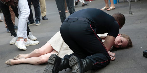 Sanitäter kümmerten sich um die 44-Jährige, die dann wieder zu Bewusstsein kam, und brachten sie in ein Krankenhaus. Der Mann konnte fliehen.