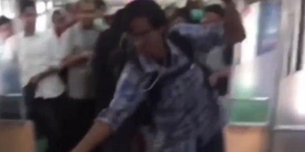 Mit bloßen Händen hat ein Indonesier einer Schlange den Garaus gemacht, die in einem voll besetzten Zug für Panik gesorgt hatte. Handyvideos zeigen den Schlangenbezwinger, wie er das Tier am Schwanz packt und dann mit dem Kopf auf den Boden schlägt - offenbar war die Schlange sofort tot.