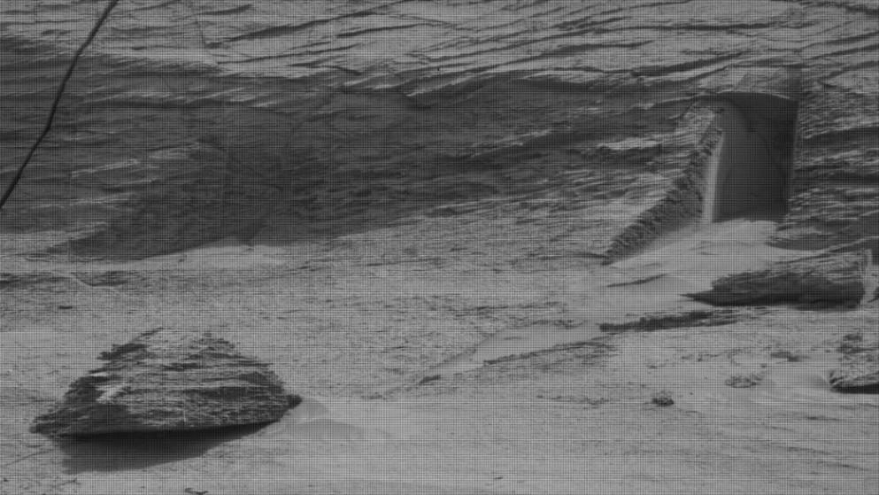 Das Mars-Foto wurde am 7. Mai 2022 vom Mars Curiosity Rover der NASA aufgenommen. Es zeigt ein außergewöhnliches Merkmal eines Felsens, das wie ein künstlich geschaffener Eingang aussieht.