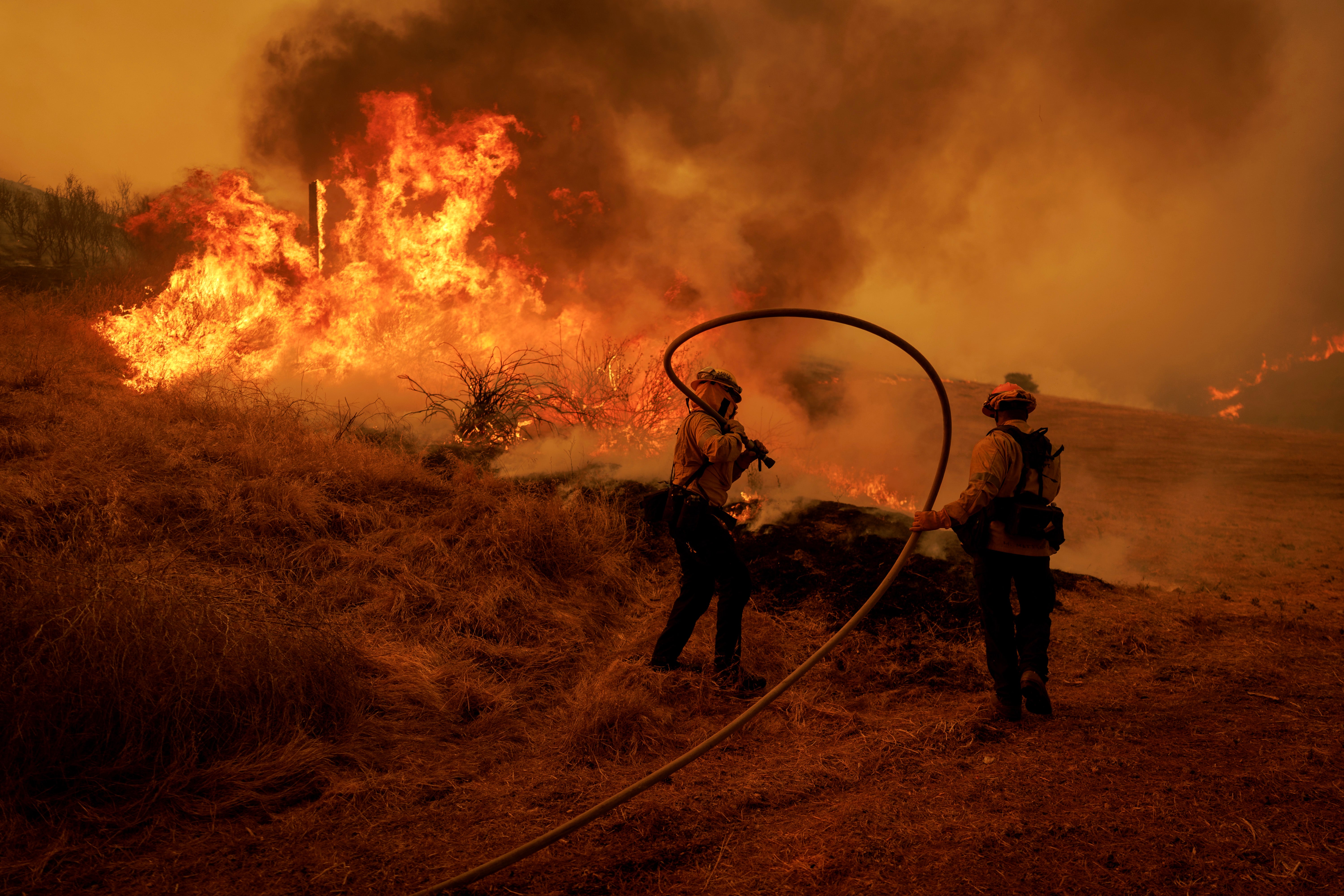 Der Vergleich mit den tödlichen Feuern im Großraum Los Angeles liegt trotzdem nah. Kathryn Barger vom Verwaltungsbezirk Los Angeles mahnte Bewohner naheliegender Gemeinden, Evakuierungsaufrufe ernstzunehmen. "Gehen Sie ohne zu zögern. Das 'Eaton'-Feuer hat uns gezeigt, wie schnell eine Katastrophe eintreten kann", schrieb sie auf Facebook. Das sogenannte Eaton-Feuer nahe Pasadena und Altadena sowie das "Palisades"-Feuer im Stadtteil Pacific Palisades am Westrand von Los Angeles hatten zu Beginn des Jahres mehr als 16.000 Gebäude zerstört. Die Feuerwehr war damals wochenlang im Großeinsatz. Mindestens 31 Menschen kamen ums Leben.