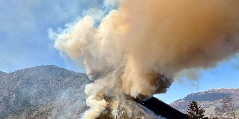 Ein großer Waldbrand ist Donnerstagnachmittag oberhalb von Prad am Stilfser Joch im Südtiroler Vinschgau ausgebrochen.