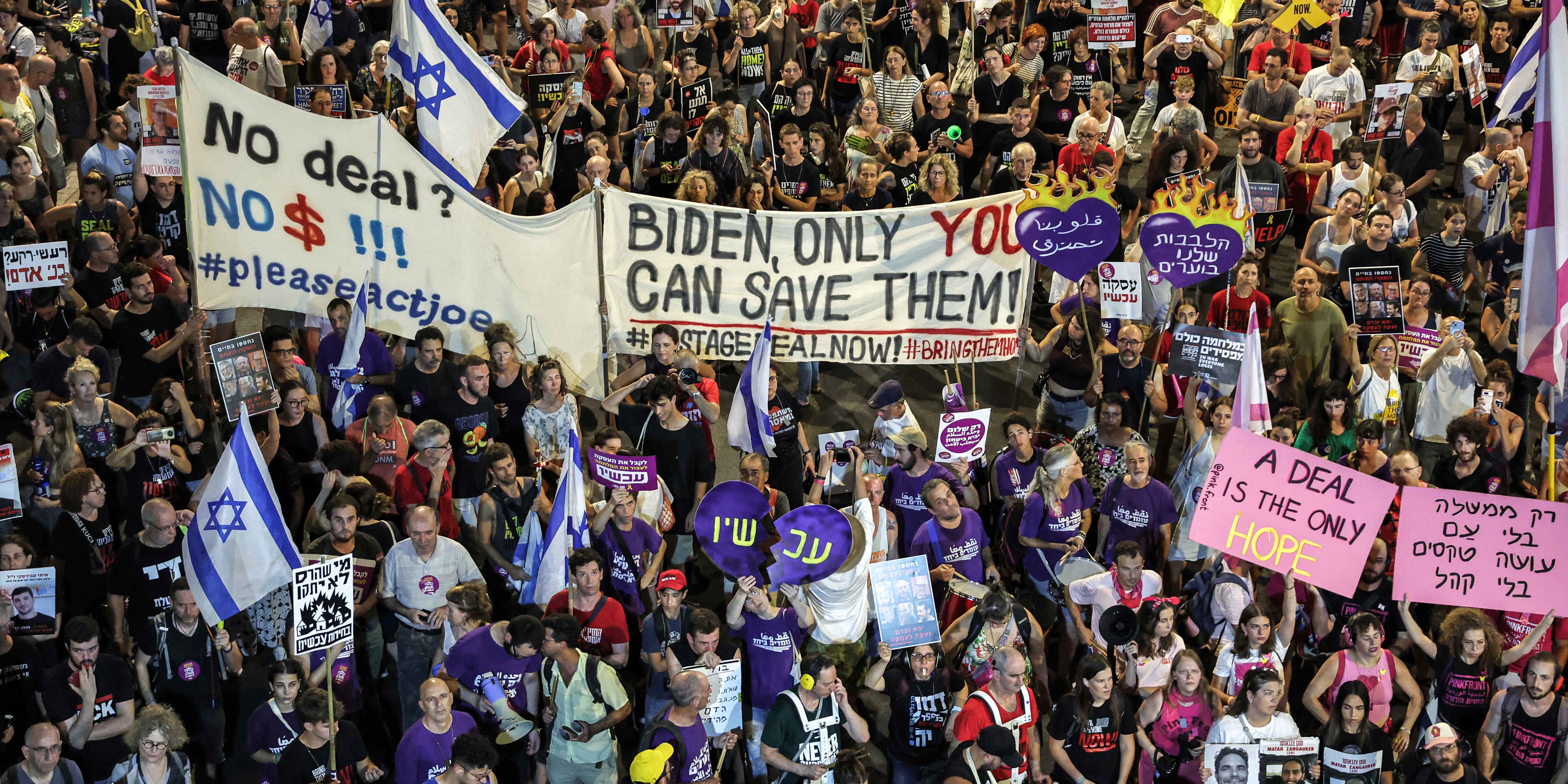 Monatelange Verhandlungen, die zur Freilassung der Geiseln und der Beendigung des Kriegs führen sollen, blieben bisher ergebnislos. Kritiker Netanyahus geben weitgehend ihm die Schuld daran. Aus ihrer Sicht hat der Regierungschef kein Interesse an einem Ende des Kriegs, weil ein solches seine Machtstellung in Israel gefährden würde.