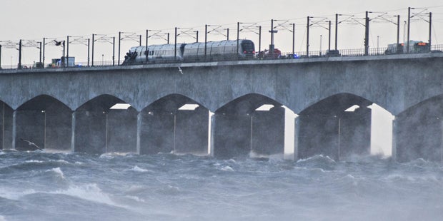 Die 18 Kilometer lange Brücke über den Großen Belt und die Öresundbrücke zwischen Dänemark und Schweden wurden wegen heftigen Windes für den Autoverkehr gesperrt. Am Vormittag war die Storebæltbrücke zumindest in einer Richtung wieder befahrbar.