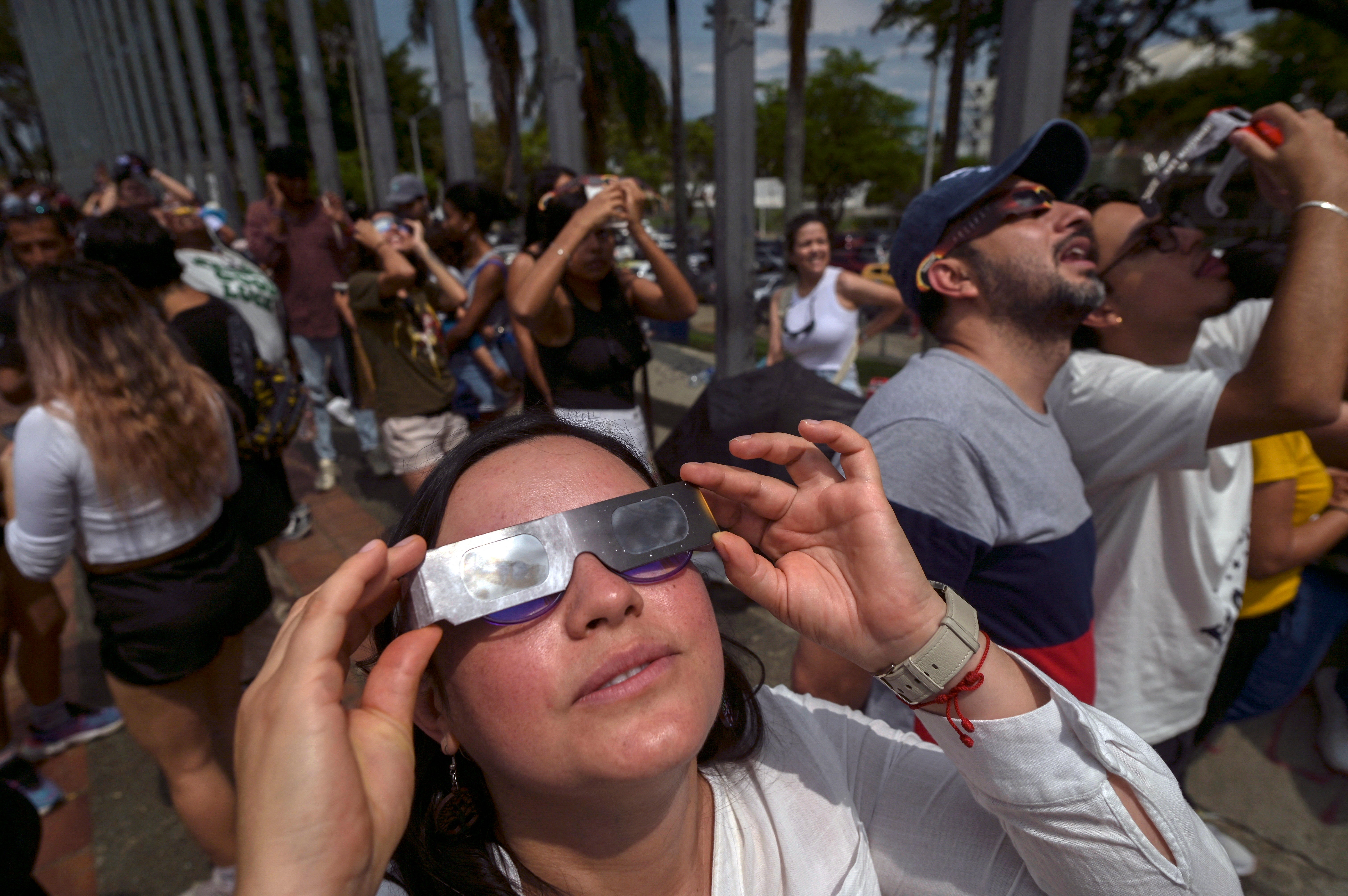 Mit speziellen Schutzbrillen ausgestattet kamen sie vielerorts, beispielsweise in Albuquerque im US-Bundesstaat New Mexico, zum gemeinsamen Betrachten des Naturschauspiels zusammen.