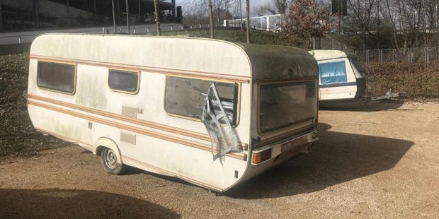 Die Polizei veröffentlichte zu Mittag Fotos von den Wohnwagen. Sie wirken verschmutzt und ungepflegt, ein Fenster war offensichtlich beschädigt und notdürftig repariert worden.