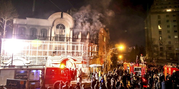 Aus Protest gegen die Hinrichtung eines prominenten schiitischen Geistlichen in Saudi-Arabien haben Demonstranten in der Nacht auf Sonntag die saudi-arabische Botschaft im Iran gestürmt. Eine Gruppe aufgebrachter Menschen brach in das Gebäude in der Hauptstadt Teheran ein, legte mehrere Feuer und zertrümmerte Mobiliar, wie die Nachrichtenagentur ISNA berichtete.