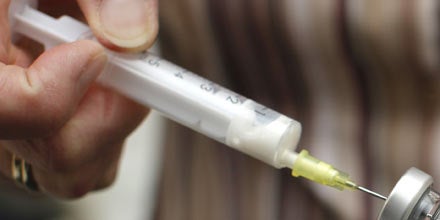 während der Aussage von Garipoglu auf und zielte mit einer Spritze auf den