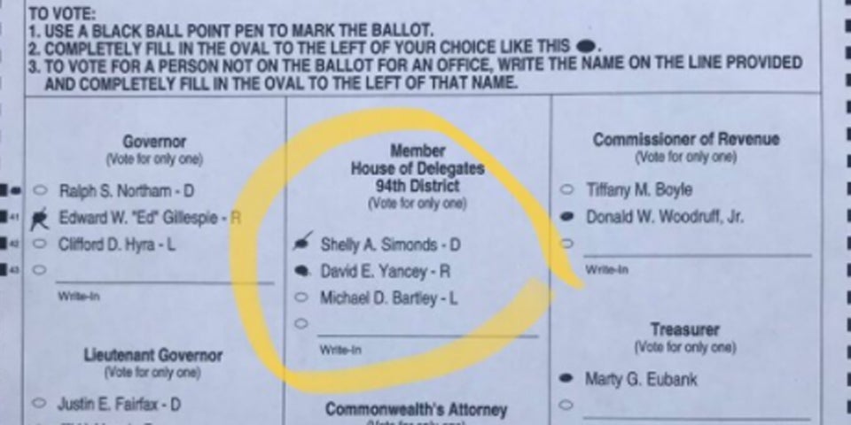 Here’s the screwy ballot that switched the Democrat’s one-vote recount win in Virginia to a tie, after three judges decided this afternoon it’s a vote for Yancey, the Republican. Now they pick sticks to break the tie. pic.twitter.com/uR1ybjIFoj