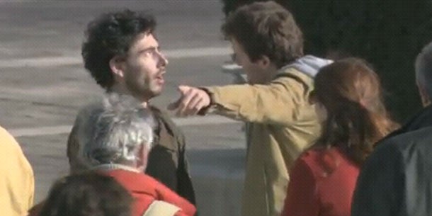 Die so Überraschten verhalten sich unterschiedlich - während die einen Hilfe anbieten, schauen andere in größter Verwirrung.