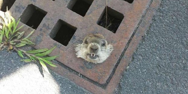 Die Polizei in Danvers (Massachusetts) musste zu einem kuriosen Einsatz ausrücken. Ein Passant hatte eigenartige Geräusche aus einem Gully gehört und dort ein Murmeltier entdeckt, das im Gitter feststeckte.