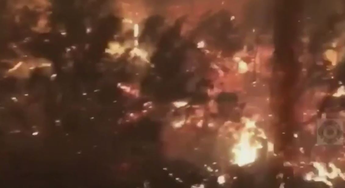Irres Video: ein US-Feuerwehrmann filmte eine Einsatzfahrt mitten durch die kalifornische Flammen-Hölle.