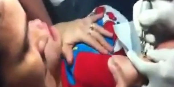 VIDEO: Der dreijährige Bub schreit wegen der Tattoonadel vor Angst.