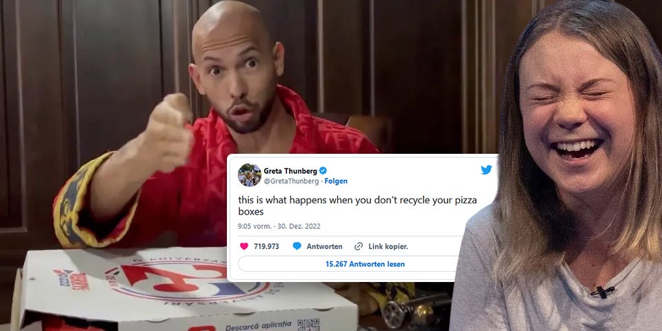 Das ist nicht ganz nach Plan verlaufen: Zwei Tage nachdem er gegenüber Klimaaktivistin Greta Thunberg auf Twitter den Auto-Macho raushängen ließ, ist der frühere Kickbox-Profi Andrew Tate am Donnerstag in Rumänien festgenommen worden. Die Justiz war dem mutmaßlichen Menschenhändler, Vergewaltiger und Bandenkriminellen laut Gerüchten auf die Schliche gekommen, weil er ein Hassvideo gegen Thunberg verbreitete, auf dem eine Pizzaschachtel mit rumänischer Aufschrift zu sehen war. Ebenfalls festgenommen wurden Tates Bruder und zwei Rumänen, nachdem die für Organisiertes Verbrechen zuständige Sondereinheit der rumänischen Staatsanwaltschaft, DIICOT, in Bukarest und Umgebung fünf Hausdurchsuchungen durchgeführt hatte. Die vier Verdächtigen sollen seit Beginn des Jahres 2021 Menschenhandel in Rumänien und auch in den USA und Großbritannien betrieben und Frauen zur Prostitution gezwungen haben.