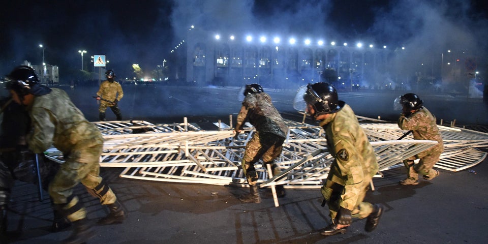 Bei dem Sturm auf das Parlamentsgebäude in der Ex-Sowjetrepublik kam es zu schweren Ausschreitungen. Demonstranten steckten Autos in Brand. Sicherheitskräfte setzten Wasserwerfer, Tränengas und Blendgranaten gegen die Menschenmenge ein. Fast 600 Menschen wurden verletzt, wie das Gesundheitsministerium mitteilte. Kirgisische Medien berichteten, dass Demonstranten mehrere öffentliche Gebäude besetzt hätten, darunter den Regierungssitz und das Bürgermeisteramt.