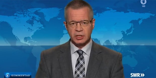 „Schusswaffengebrauch gegen Flüchtlinge an der deutschen Grenze ist krank, gewissenlos, abscheulich“, führt der Tagesthemen-Moderator aus und redet sich regelrecht in Rage.