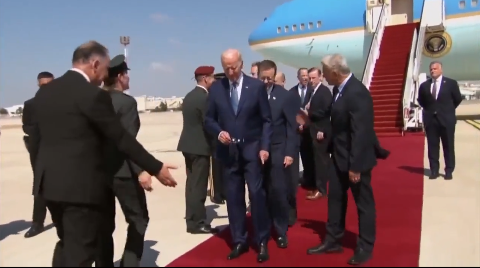 ????????????????After getting off the plane in Israel, the first thing Biden asked: "What am i doing now?" pic.twitter.com/yeMdWs4zV1