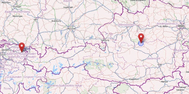Damit waren sie gut beraten - denn zwischen den beiden Sankt Gallen liegen 566 Straßen-Kilometer. Dass das Navigations-Gerät den falschen Ort auswählte, ist nicht unbedingt verwunderlich. Auch bei Google-Maps führt eine Suche nach "St. Gallen" in die Schweiz.