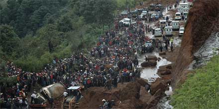In Guatemala wurde ein Bus von einer Schlammlawine erfasst.