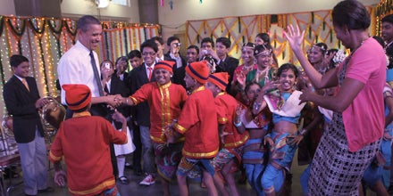 US-Präsident Barack Obama und First Lady Michelle haben sich von der Feststimmung in Indien anstecken lassen: Bei einer Veranstaltung zu Diwali, dem hinduistischen Lichterfest, in der westindischen Metropole Mumbai tanzten beide mit indischen Schülern.