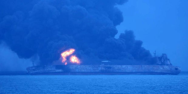 Der unter der Flagge Panamas fahrende iranische Öltanker "Sanchi" geriet schwer in Schieflage und drohte zu kentern. "Der Tanker treibt auf dem Meer und brennt weiter", berichtete das Transportministerium in Peking am Sonntagnachmittag (Ortszeit). "Öl ist auf der Meeresoberfläche." Wie groß der Ölfilm durch den leckgeschlagenen Tanker ist, wurde nicht mitgeteilt. Eine große Such- und Rettungsaktion lief an, sie schien angesichts des Ausmaßes des Unglücks aber wenig ausrichten zu können.